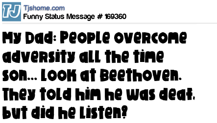 X says My Dad: People overcome adversity all the time son... Look at Beethoven. They told him he was deaf, but did he listen?