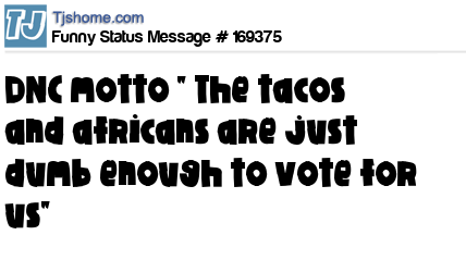 X says DNC motto " The tacos and africans are just dumb enough to vote for us"