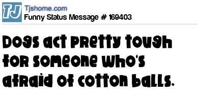 X says Dogs act pretty tough for someone who's afraid of cotton balls.