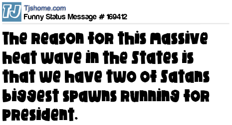 X says The reason for this massive heat wave in the States is that we have two of Satans biggest spawns running for president.