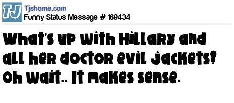 X says What's up with Hillary and all her doctor evil jackets? Oh wait.. It makes sense.