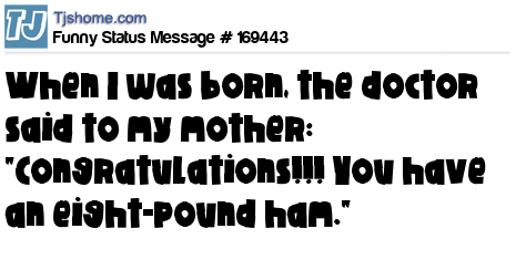 X says When I was born, the doctor said to my mother: "Congratulations!!! You have an eight-pound ham."