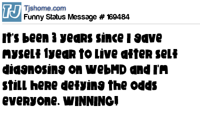 X says It's been 3 years since I gave myself 1year to live after self diagnosing on WebMD and I'm still here defying the odds everyone. WINNING!