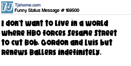 X says I don't want to live in a world where HBO forces Sesame Street to cut Bob, Gordon and Luis but renews Ballers indefinitely.