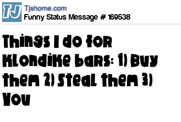 X says Things I do for klondike bars: 1) Buy them 2) Steal them 3) You