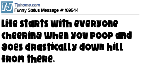 X says Life starts with everyone cheering when you poop and goes drastically down hill from there.