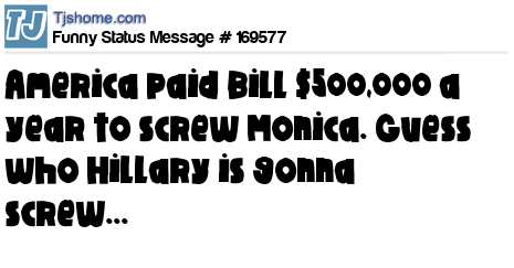 X says America paid Bill $500,000 a year to screw Monica. Guess who Hillary is gonna screw...