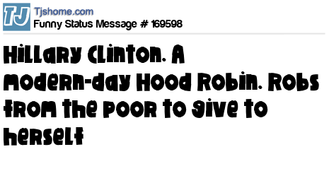 X says Hillary Clinton. A modern-day Hood Robin. Robs from the poor to give to herself