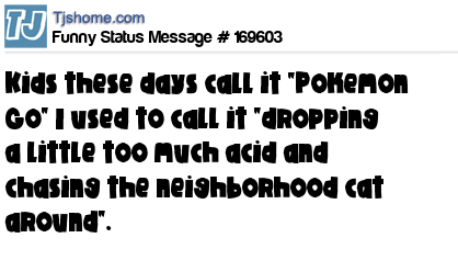 X says Kids these days call it "Pokemon Go" I used to call it "dropping a little too much acid and chasing the neighborhood cat around".