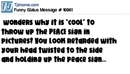 X wonders why it is "cool" to throw up the PEACE sign in pictures? You look retarded with your head twisted to the side and holding up the peace sign...