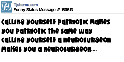 X says Calling yourself patriotic makes you patriotic the same way calling yourself a neurosurgeon makes you a neurosurgeon....