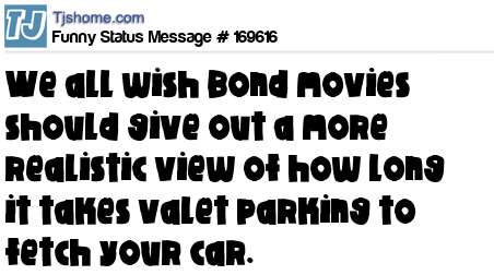 - # 171158 Just wish Bond movies give a more realistic view of how long it takes valet parking to fetch your car.