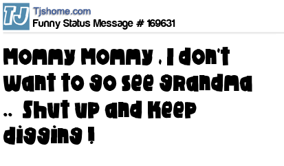 X says Mommy Mommy , I don't want to go see grandma .. Shut up and keep digging !