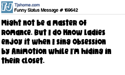 X says Might not be a master of romance. But I do know ladies enjoy it when I sing Obsession by Animotion while I'm hiding in their closet.