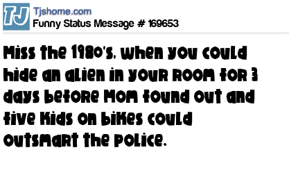X says Miss the 1980's, when you could hide an alien in your room for 3 days before Mom found out and five kids on bikes could outsmart the police.