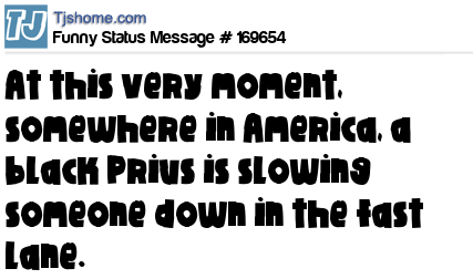 X says At this very moment, somewhere in America, a black Prius is slowing someone down in the fast lane.