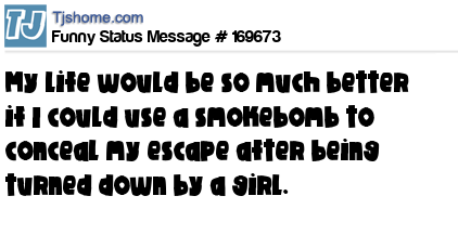 X says My life would be so much better if I could use a smokebomb to conceal my escape after being turned down by a girl.