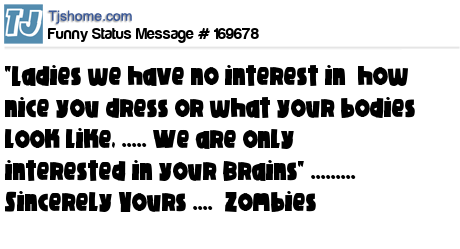 X "Ladies we have no interest in how nice you dress or what your bodies look like, ..... We are only interested in your Brains" ......... Sincerely Yours .... Zombies