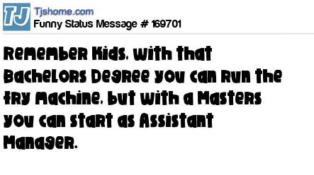 X says Remember kids, with that Bachelors Degree you can run the fry machine, but with a Masters you can start as Assistant Manager.