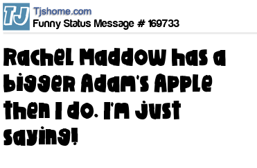 X says Rachel Maddow has a bigger Adam's Apple then I do. I'm just saying!