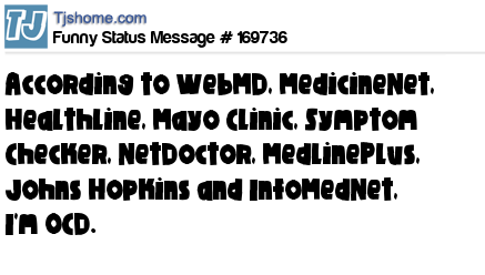 X says According to WebMD, MedicineNet, Healthline, Mayo Clinic, Symptom Checker, NetDoctor, MedlinePlus, Johns Hopkins and InfoMedNet, I'm OCD.