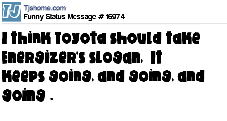 X says I think Toyota should take Energizer's slogan, “It keeps going, and going, and going”.