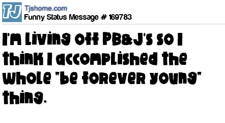 X says I'm living off PB&J's so I think I accomplished the whole "be forever young" thing.