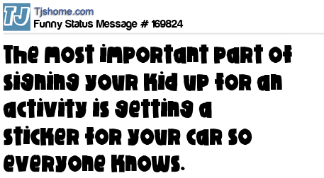 X says The most important part of signing your kid up for an activity is getting a sticker for your car so everyone knows.
