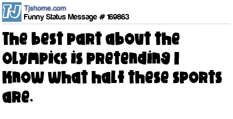 X says The best part about the Olympics is pretending I know what half these sports are.