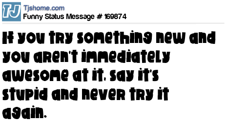X says If you try something new and you aren't immediately awesome at it, say it's stupid and never try it again.