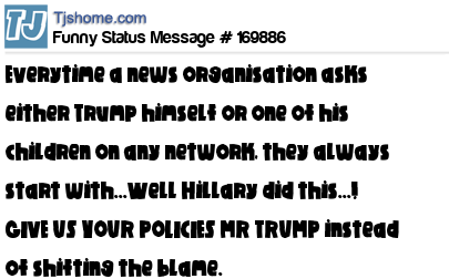 X says everytime a news organisation asks either Trump himself or one of his children on any network, they always start with...Well Hillary did this...! GIVE US YOUR POLICIES MR TRUMP instead of shifting the blame.