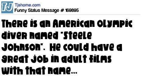 X There is an American Olympic diver named "Steele Johnson". He could have a great job in adult films with that name...