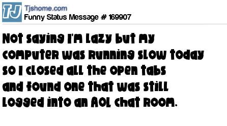 X says Not saying I'm lazy but my computer was running slow today so I closed all the open tabs and found one that was still logged into an AOL chat room.