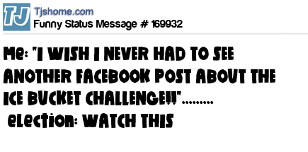 X says me: "I WISH I NEVER HAD TO SEE ANOTHER FACEBOOK POST ABOUT THE ICE BUCKET CHALLENGE!!"......... election: WATCH THIS