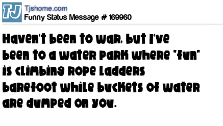 X says Haven't been to war, but I've been to a water park where "fun" is climbing rope ladders barefoot while buckets of water are dumped on you.
