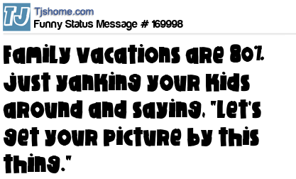- # 160080 Family vacations: When you pay a lot of money to yell at your kids in exotic destinations, preferably on a balcony with an ocean view.