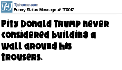 X says Pity Donald Trump never considered building a wall around his trousers.