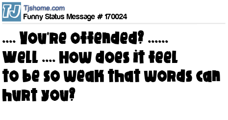 - # 205457 How does it feel to be so weak that mere words offend you? Your ancestors must be so proud.