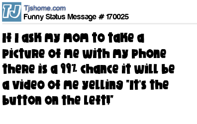 - # 98652 If I ask my mom to take a picture for me with my phone there is a 99% chance it will be a video of me yelling "IT'S THE BUTTON ON FRONT!"