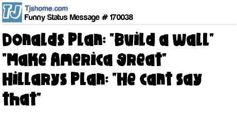 X says Donalds Plan: "Build a wall" "Make America great" Hillarys Plan: "He cant say that"