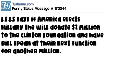 X says I.S.I.S says if America elects Hillary the will donate $2 million to the Clinton Foundation and have Bill speak at their next function for another million.
