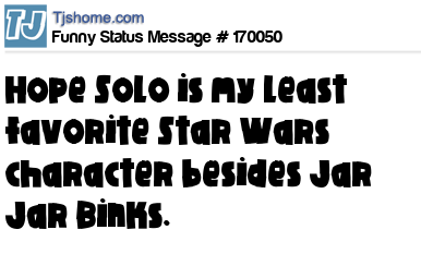 X says Hope Solo is my least favorite Star Wars character besides Jar Jar Binks.