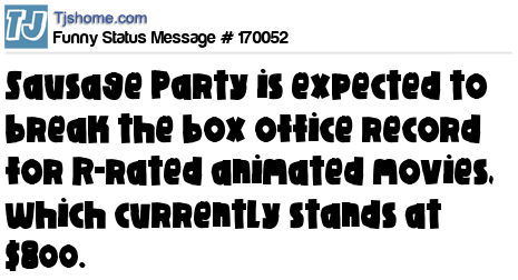 X says Sausage Party is expected to break the box office record for R-rated animated movies, which currently stands at $800.