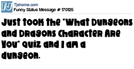 X says Just took the "What Dungeons and Dragons Character Are You" quiz and I am a dungeon.