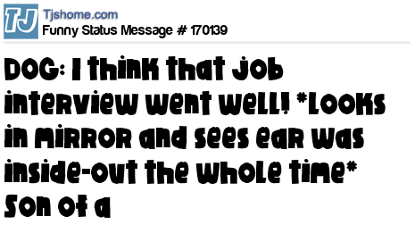 X says DOG: I think that job interview went well! *looks in mirror and sees ear was inside-out the whole time* Son of a