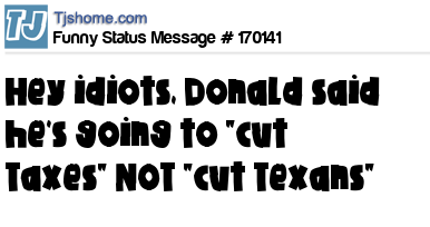X says Hey idiots, Donald said he's going to "cut Taxes" NOT "cut Texans"