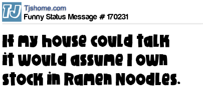 X says If my house could talk it would assume I own stock in Ramen Noodles.
