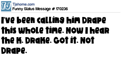 X says I've been calling him Drape this whole time. Now I hear the k. Drake. Got it. Not Drape.