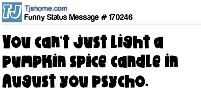 X says You can't just light a pumpkin spice candle in August you psycho.