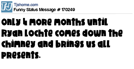 X says Only 4 more months until Ryan Lochte comes down the chimney and brings us all presents.